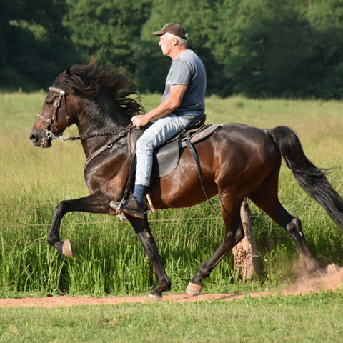 In fact, the single footers go up to 50 km/h at maximum speed. Falcon became known as one of the world's fastest horses in the world when a vet, fascinated by his gait mechanics, extensively visualized and documented them. Another founding father of the Single Footing Horses was Coral LaCe, a Largo Paso Fino (born 1964), who, however, hardly plays a role in today's breeding. The targeted breeding for the single foot arose from the enthusiasm for the tough, resilient, relaxed and fast rackers.